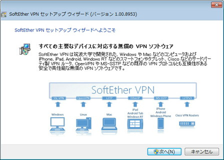 セットアップウィザードが起動します。「インストールするソフトウェアの選択」画面では「SoftEther VPN Client」を選択してください。